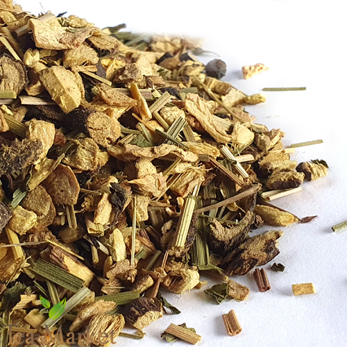 Vynikajúca, vzrušujúco svieža kompozícia s ajurvédskym pôvodom. Intenzívne korenistý zázvor sa spája s čerstvými ingredienciami, ako je mäta pieporná, citrónová tráva a vynikajúci citrónový olej, a vytvára tak jedinečný chuťový zážitok. Typická chuť jemného sladkého drievka vytvára harmonickú kombináciu. Vynikajúci čajík na spríjemnenie chvíľ a zahriatie počas jesenných a zimných večerov.